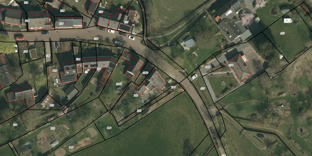 Het perceel waarop Oud Lemiers 37 staat heeft een oppervlakte van 572 m². Dit is een groot perceel. De perceeloppervlakte wordt geregistreerd door het Kadaster. Gedetailleerde informatie over de maten van dit perceel kunt u vinden in het rapport Kadastrale kaart met maatvoering van Oud Lemiers 37.