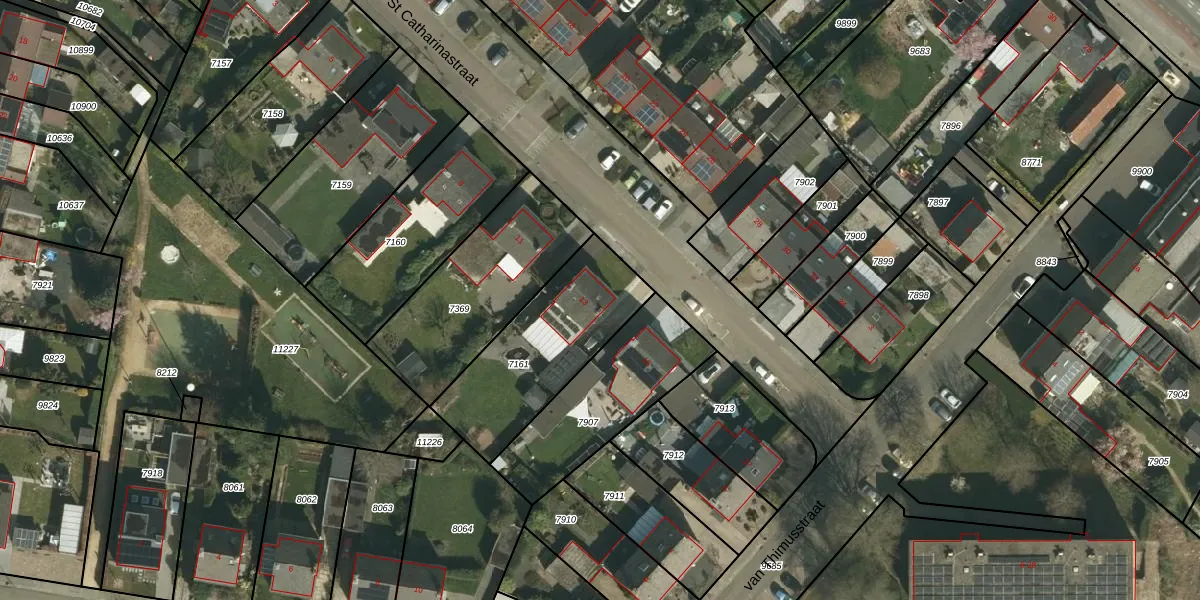 St Catharinastraat 13 is gelegen op kadastraal perceel VAA00A7161. Deze kadastrale aanduiding is uniek en wordt gebruikt door het Kadaster om eigendomsrechten en andere zakelijke rechten vast te leggen. Het perceel maakt onderdeel uit van de kadastrale gemeente Vaals.
