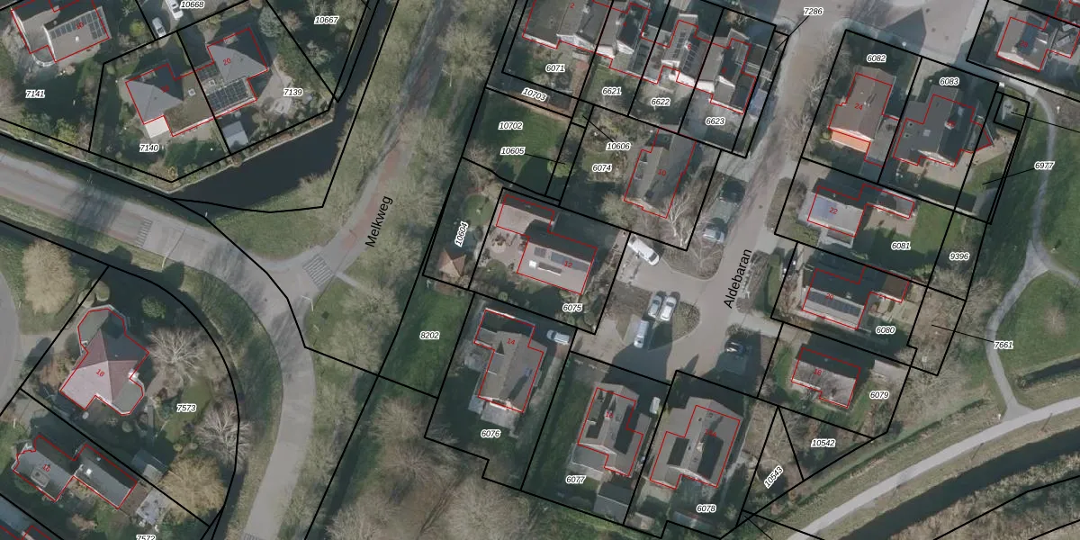 Het perceel waarop Aldebaran 12 staat heeft een oppervlakte van 500 m². Dit is een groot perceel. De perceeloppervlakte wordt geregistreerd door het Kadaster. Gedetailleerde informatie over de maten van dit perceel kunt u vinden in het rapport Kadastrale kaart met maatvoering van Aldebaran 12.