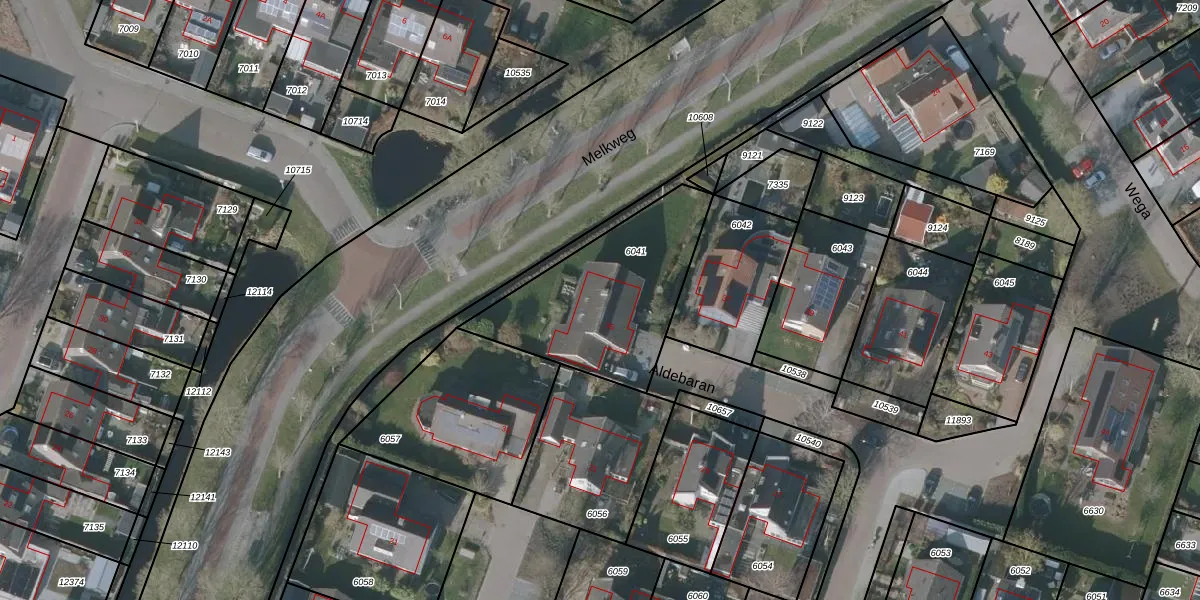 Het perceel waarop Aldebaran 35 staat heeft een oppervlakte van 680 m². Dit is een groot perceel. De perceeloppervlakte wordt geregistreerd door het Kadaster. Gedetailleerde informatie over de maten van dit perceel kunt u vinden in het rapport Kadastrale kaart met maatvoering van Aldebaran 35.