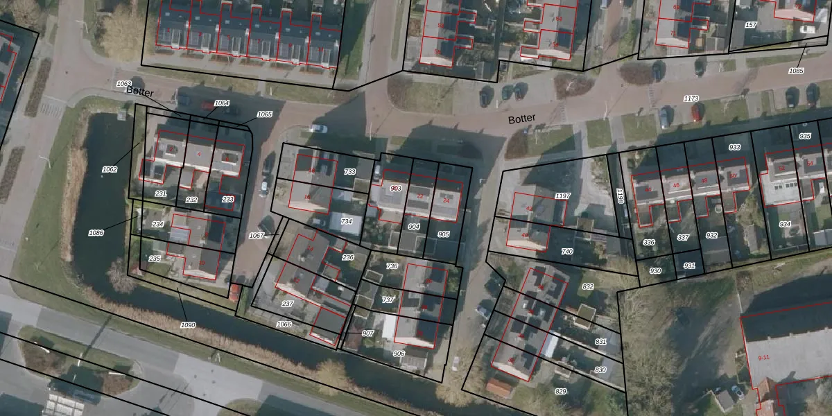 Het perceel waarop Botter 22 staat heeft een oppervlakte van 147 m². Dit is een middelgroot perceel. De perceeloppervlakte wordt geregistreerd door het Kadaster. Gedetailleerde informatie over de maten van dit perceel kunt u vinden in het rapport Kadastrale kaart met maatvoering van Botter 22.