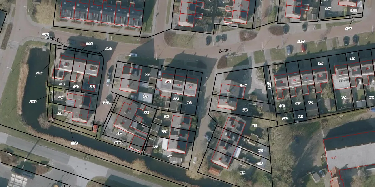Het perceel waarop Botter 24 staat heeft een oppervlakte van 190 m². Dit is een middelgroot perceel. De perceeloppervlakte wordt geregistreerd door het Kadaster. Gedetailleerde informatie over de maten van dit perceel kunt u vinden in het rapport Kadastrale kaart met maatvoering van Botter 24.