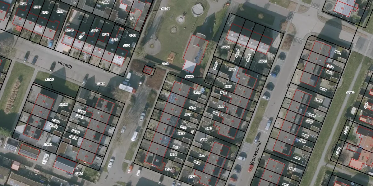 Het perceel waarop Houtrib 16 staat heeft een oppervlakte van 227 m². Dit is een middelgroot perceel. De perceeloppervlakte wordt geregistreerd door het Kadaster. Gedetailleerde informatie over de maten van dit perceel kunt u vinden in het rapport Kadastrale kaart met maatvoering van Houtrib 16.