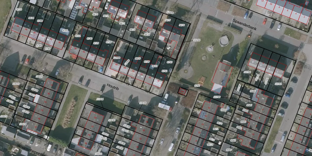 Het perceel waarop Houtrib 18 staat heeft een oppervlakte van 226 m². Dit is een middelgroot perceel. De perceeloppervlakte wordt geregistreerd door het Kadaster. Gedetailleerde informatie over de maten van dit perceel kunt u vinden in het rapport Kadastrale kaart met maatvoering van Houtrib 18.