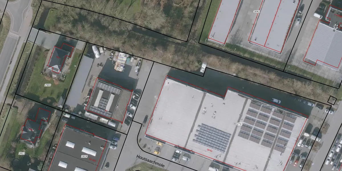 Het perceel waarop Houtsaachmole 19 staat heeft een oppervlakte van 5935 m². Dit is een zeer groot perceel. De perceeloppervlakte wordt geregistreerd door het Kadaster. Gedetailleerde informatie over de maten van dit perceel kunt u vinden in het rapport Kadastrale kaart met maatvoering van Houtsaachmole 19.