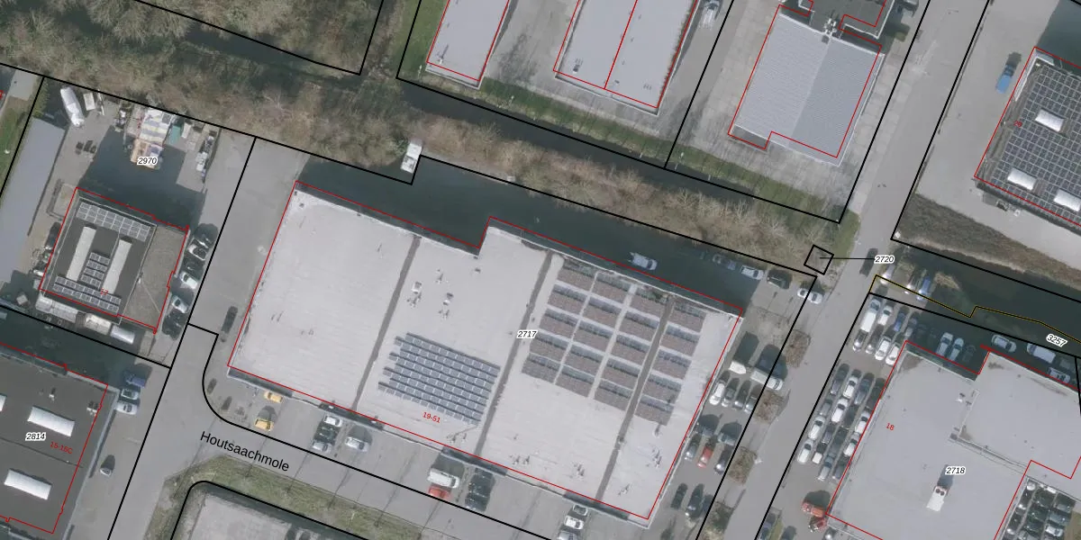 Het perceel waarop Houtsaachmole 43 staat heeft een oppervlakte van 5935 m². Dit is een zeer groot perceel. De perceeloppervlakte wordt geregistreerd door het Kadaster. Gedetailleerde informatie over de maten van dit perceel kunt u vinden in het rapport Kadastrale kaart met maatvoering van Houtsaachmole 43.