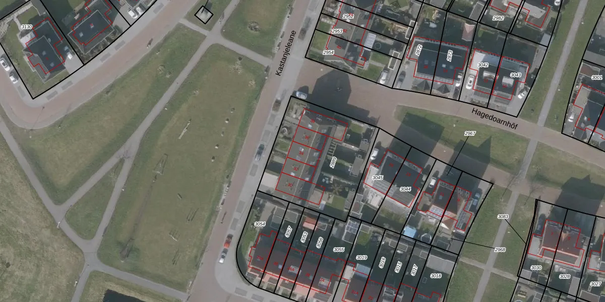 Kastanjeleane 34 is gelegen op kadastraal perceel OTZ00D2889. Deze kadastrale aanduiding is uniek en wordt gebruikt door het Kadaster om eigendomsrechten en andere zakelijke rechten vast te leggen. Het perceel maakt onderdeel uit van de kadastrale gemeente Oosterzee.