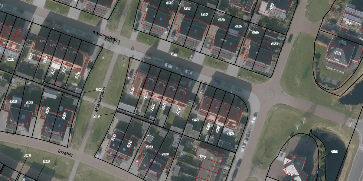 Kastanjeleane 88 is gelegen op kadastraal perceel OTZ00D2907. Deze kadastrale aanduiding is uniek en wordt gebruikt door het Kadaster om eigendomsrechten en andere zakelijke rechten vast te leggen. Het perceel maakt onderdeel uit van de kadastrale gemeente Oosterzee.