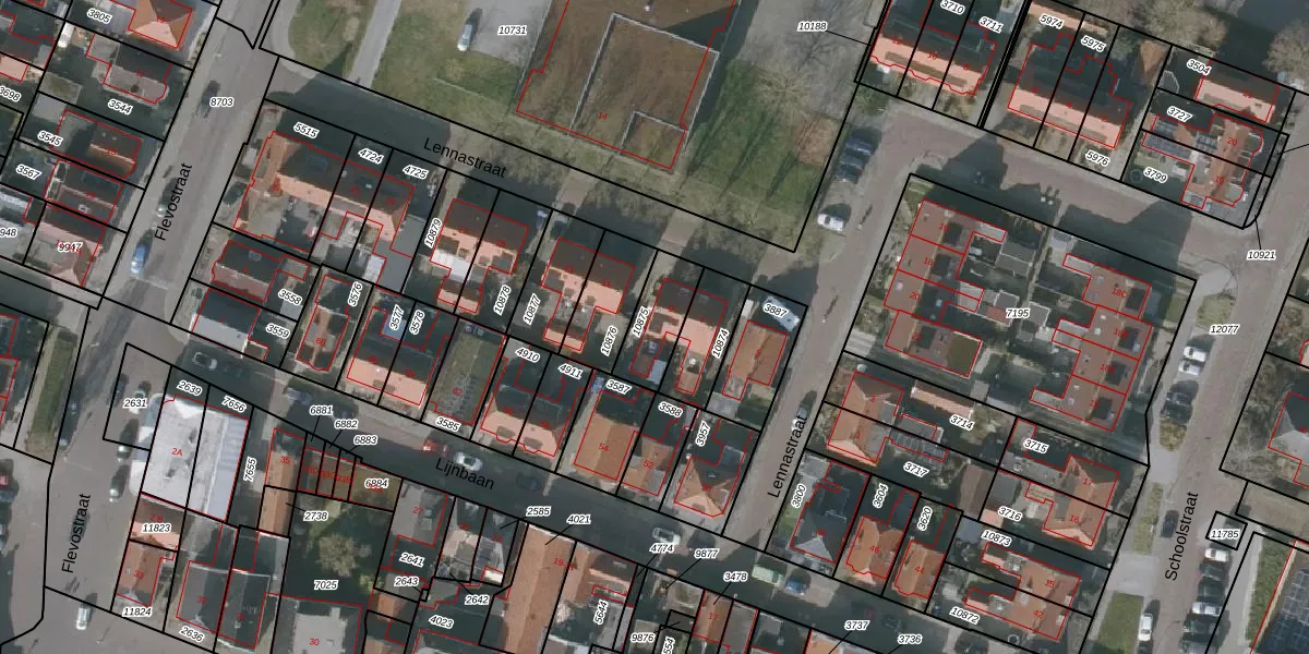Het perceel waarop Lennastraat 9 staat heeft een oppervlakte van 160 m². Dit is een middelgroot perceel. De perceeloppervlakte wordt geregistreerd door het Kadaster. Gedetailleerde informatie over de maten van dit perceel kunt u vinden in het rapport Kadastrale kaart met maatvoering van Lennastraat 9.