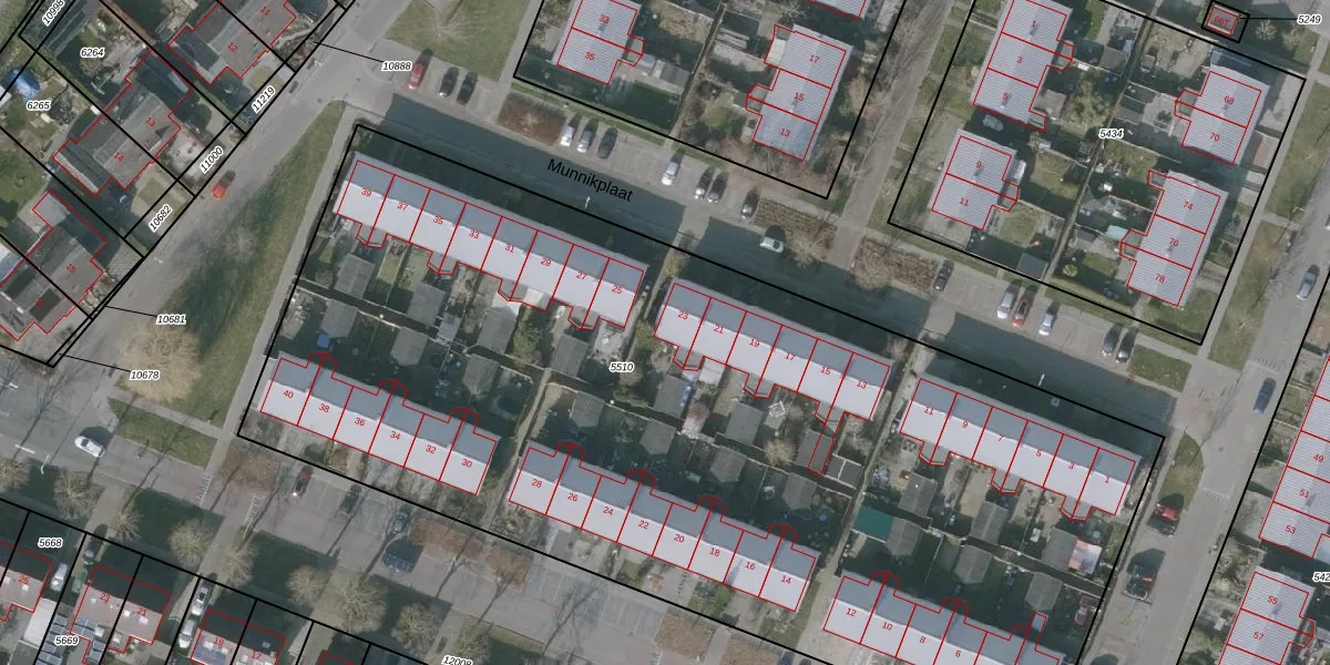 Het perceel waarop Munnikplaat 23 staat heeft een oppervlakte van 6514 m². Dit is een zeer groot perceel. De perceeloppervlakte wordt geregistreerd door het Kadaster. Gedetailleerde informatie over de maten van dit perceel kunt u vinden in het rapport Kadastrale kaart met maatvoering van Munnikplaat 23.