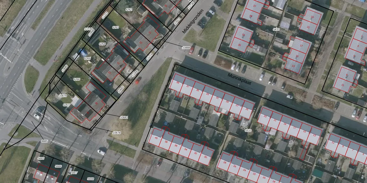 Het perceel waarop Munnikplaat 37 staat heeft een oppervlakte van 6514 m². Dit is een zeer groot perceel. De perceeloppervlakte wordt geregistreerd door het Kadaster. Gedetailleerde informatie over de maten van dit perceel kunt u vinden in het rapport Kadastrale kaart met maatvoering van Munnikplaat 37.