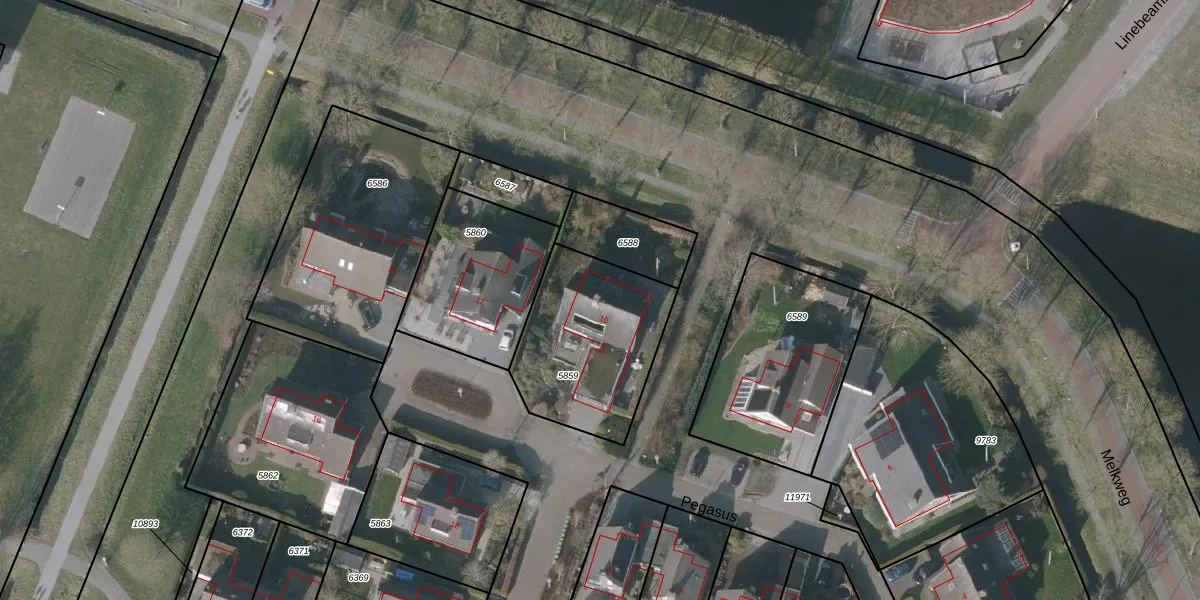 Het perceel waarop Pegasus 10 staat heeft een oppervlakte van 602 m². Dit is een groot perceel. De perceeloppervlakte wordt geregistreerd door het Kadaster. Gedetailleerde informatie over de maten van dit perceel kunt u vinden in het rapport Kadastrale kaart met maatvoering van Pegasus 10.