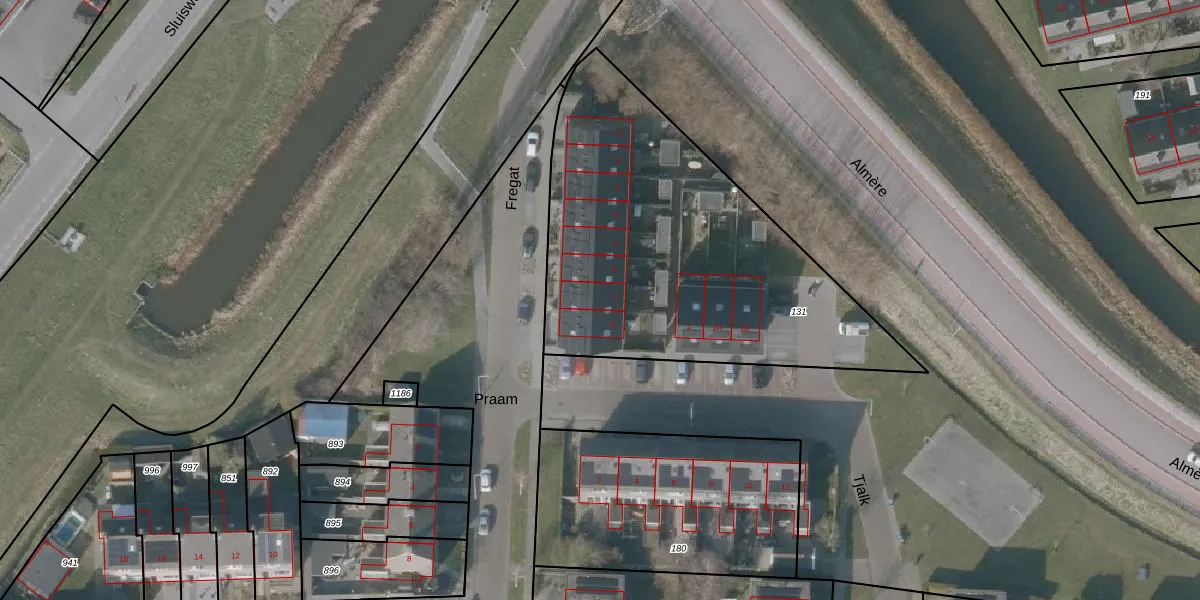 Het perceel waarop Praam 7 staat heeft een oppervlakte van 1800 m². Dit is een zeer groot perceel. De perceeloppervlakte wordt geregistreerd door het Kadaster. Gedetailleerde informatie over de maten van dit perceel kunt u vinden in het rapport Kadastrale kaart met maatvoering van Praam 7.