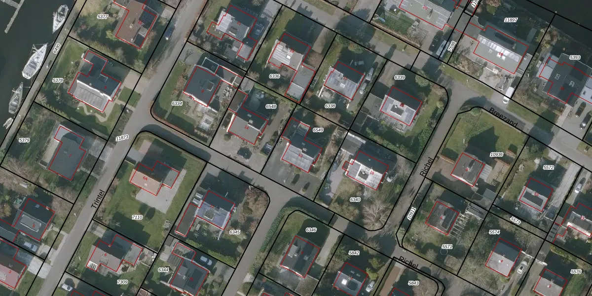 Gebruik de zoekbalk of klik op een perceel voor informatie over de adressen binnen dit perceel.