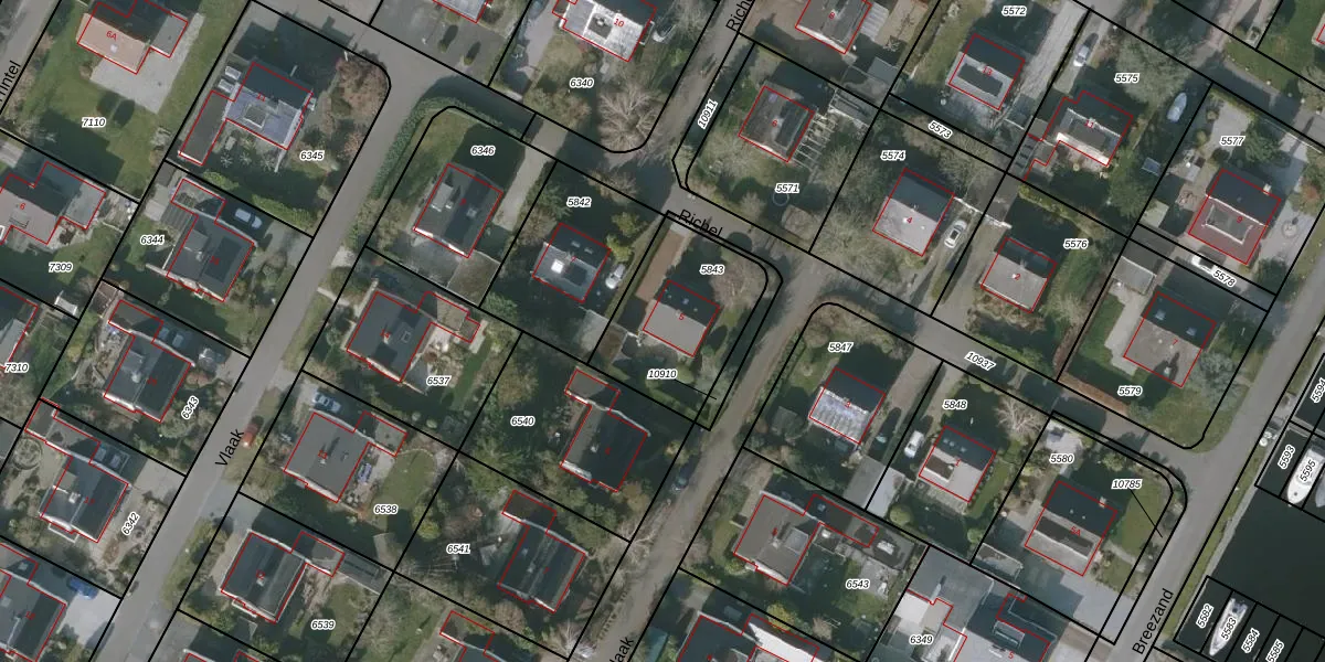Het perceel waarop Richel 5 staat heeft een oppervlakte van 457 m². Dit is een groot perceel. De perceeloppervlakte wordt geregistreerd door het Kadaster. Gedetailleerde informatie over de maten van dit perceel kunt u vinden in het rapport Kadastrale kaart met maatvoering van Richel 5.