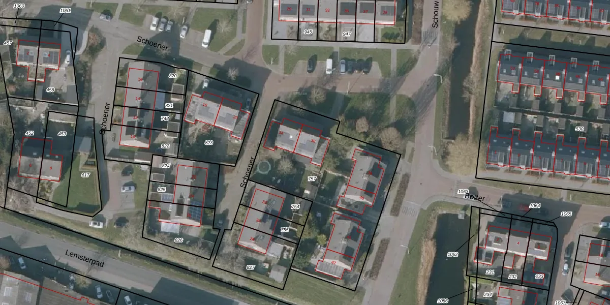 Schoener 36 is gelegen op kadastraal perceel LMR01C757. Deze kadastrale aanduiding is uniek en wordt gebruikt door het Kadaster om eigendomsrechten en andere zakelijke rechten vast te leggen. Het perceel maakt onderdeel uit van de kadastrale gemeente Lemmer.