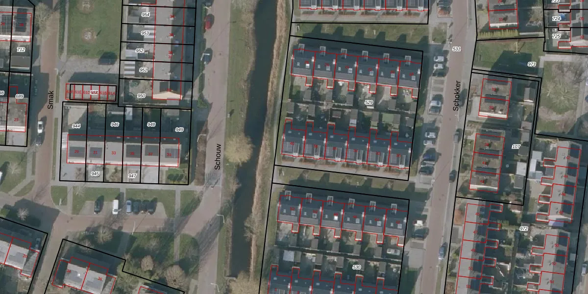 Het perceel waarop Schokker 40 staat heeft een oppervlakte van 2030 m². Dit is een zeer groot perceel. De perceeloppervlakte wordt geregistreerd door het Kadaster. Gedetailleerde informatie over de maten van dit perceel kunt u vinden in het rapport Kadastrale kaart met maatvoering van Schokker 40.