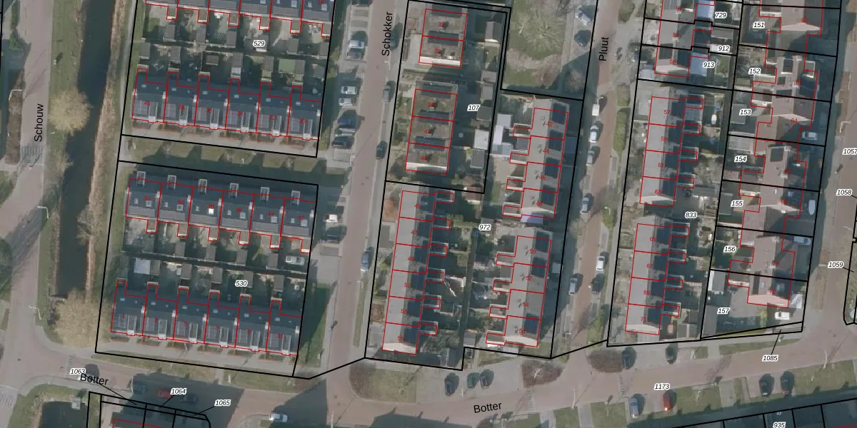 Het perceel waarop Schokker 45 staat heeft een oppervlakte van 2227 m². Dit is een zeer groot perceel. De perceeloppervlakte wordt geregistreerd door het Kadaster. Gedetailleerde informatie over de maten van dit perceel kunt u vinden in het rapport Kadastrale kaart met maatvoering van Schokker 45.