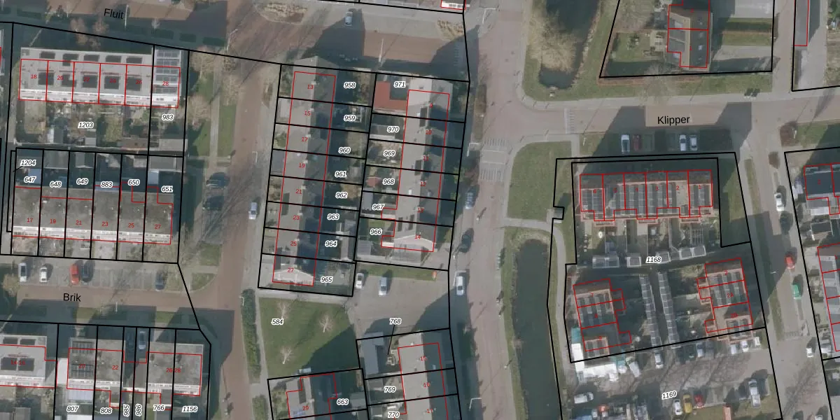 Gebruik de zoekbalk of klik op een perceel voor informatie over de adressen binnen dit perceel.