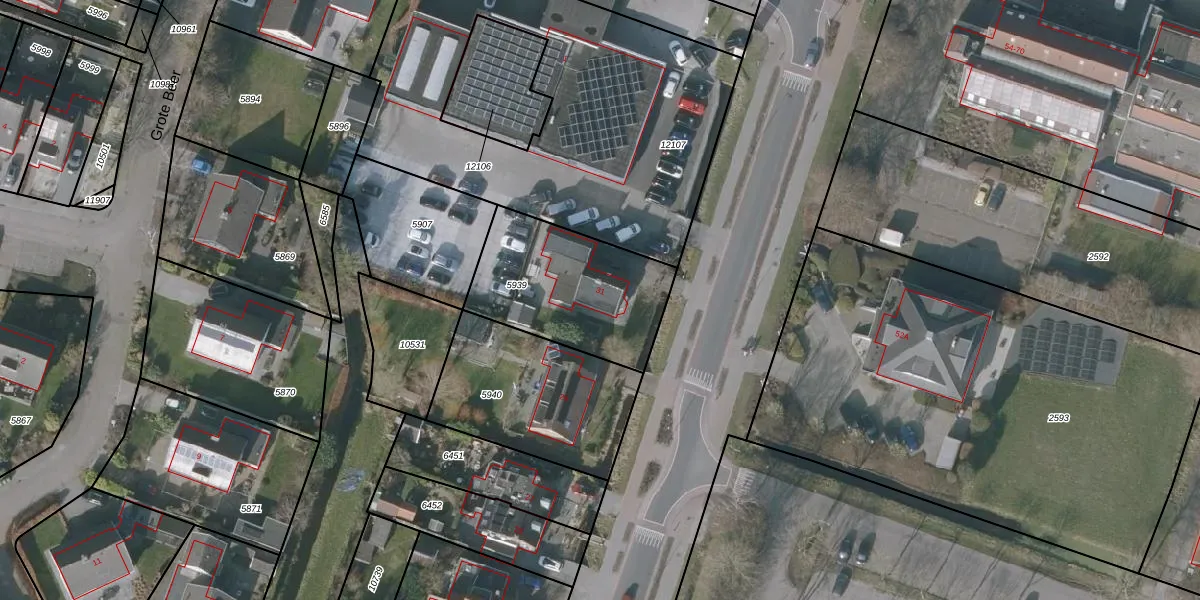 Gebruik de zoekbalk of klik op een perceel voor informatie over de adressen binnen dit perceel.