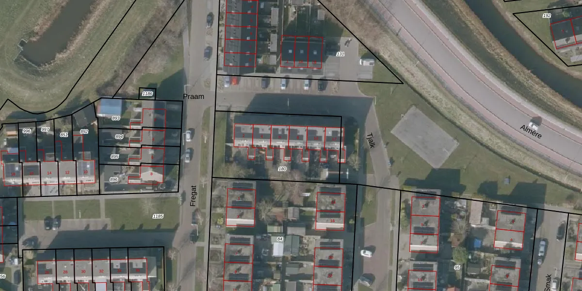 Het perceel waarop Tjalk 8 staat heeft een oppervlakte van 996 m². Dit is een groot perceel. De perceeloppervlakte wordt geregistreerd door het Kadaster. Gedetailleerde informatie over de maten van dit perceel kunt u vinden in het rapport Kadastrale kaart met maatvoering van Tjalk 8.