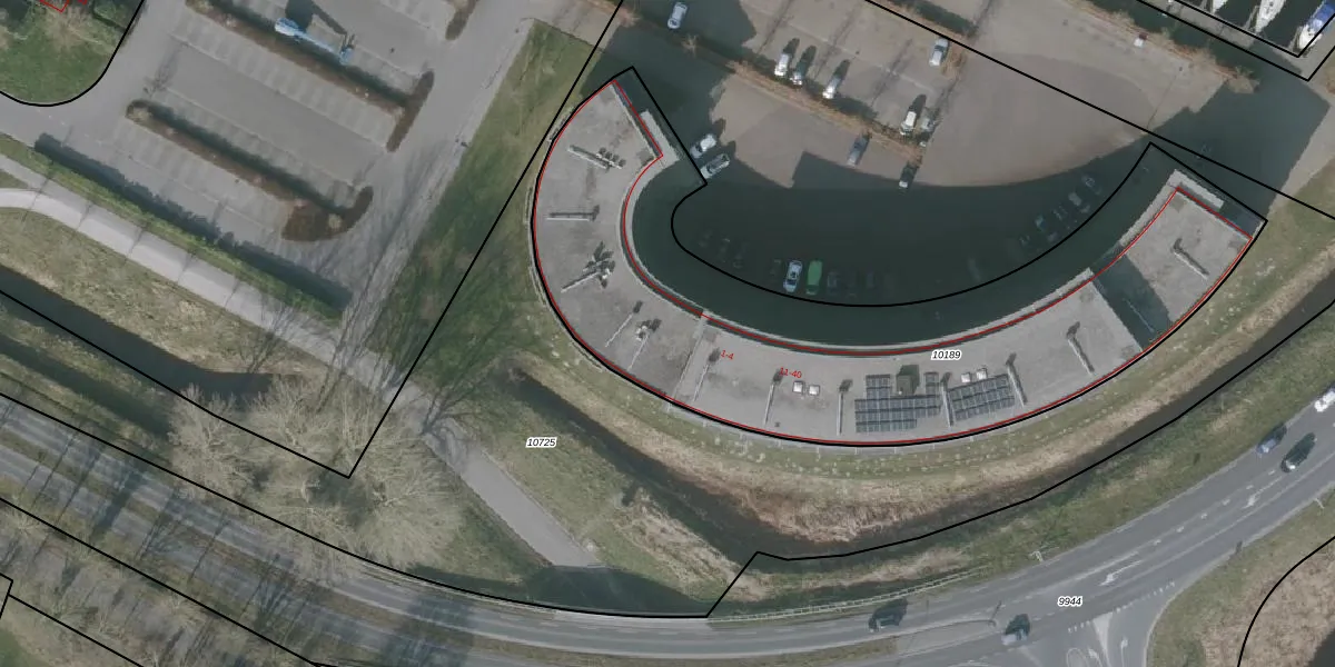 Het adres is gelegen op perceel 10189 in de sectie A en de kadastrale gemeente Lemmer. De kadastrale aanduiding is aldus LMR01-A-10189. De gemiddelde perceelgrootte in Lemmer is 5960,9 m². Dit perceel is kleiner: de perceeloppervlakte bedraagt 2736 m². Het grootste perceel in de kadastrale gemeente is 20,58 km². Het kleinste perceel heeft een oppervlakte van 0 m². Op het perceel zijn 34 adressen aanwezig. De huidige grenzen van het perceel zijn digitaal in de Basisregistratie Kadaster (BRK) geregistreerd op 29-11-2011.