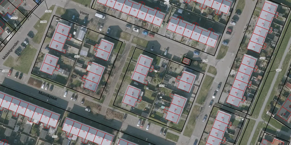 Het perceel waarop Vormt 3 staat heeft een oppervlakte van 2166 m². Dit is een zeer groot perceel. De perceeloppervlakte wordt geregistreerd door het Kadaster. Gedetailleerde informatie over de maten van dit perceel kunt u vinden in het rapport Kadastrale kaart met maatvoering van Vormt 3.
