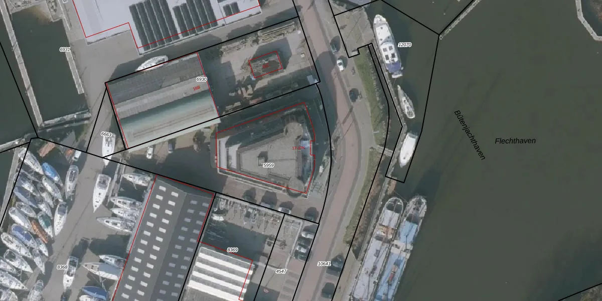 Het adres is gelegen op perceel 5959 in de sectie A en de kadastrale gemeente Lemmer. De kadastrale aanduiding is aldus LMR01-A-5959. Het perceel is 1795 m² groot. Dat is kleiner dan de gemiddelde perceeloppervlakte in Lemmer, dat op 5961,78 m² ligt. De grootste perceeloppervlakte in de kadastrale gemeente is 20,58 km². De kleinste oppervlakte bedraagt 0 m². Op het perceel liggen in totaal 8 adressen. In de Basisregistratie Kadaster (BRK) werden de grenzen van het perceel geregistreerd op 11-01-2012.