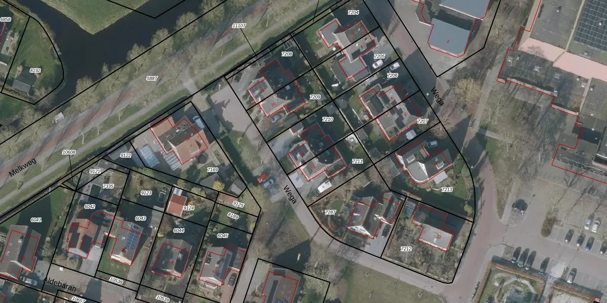 Het perceel waarop Wega 18 staat heeft een oppervlakte van 327 m². Dit is een groot perceel. De perceeloppervlakte wordt geregistreerd door het Kadaster. Gedetailleerde informatie over de maten van dit perceel kunt u vinden in het rapport Kadastrale kaart met maatvoering van Wega 18.