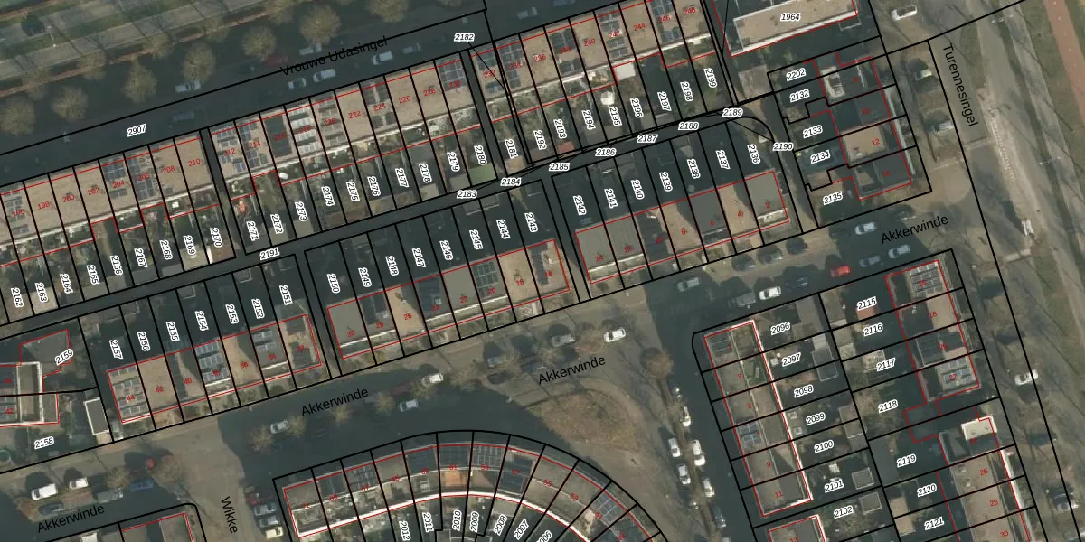 Akkerwinde 16 is gelegen op kadastraal perceel LEN00A2143. Deze kadastrale aanduiding is uniek en wordt gebruikt door het Kadaster om eigendomsrechten en andere zakelijke rechten vast te leggen. Het perceel maakt onderdeel uit van de kadastrale gemeente Lent.