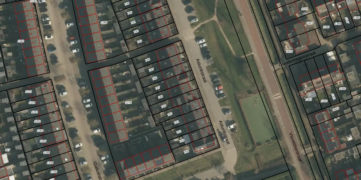 Het perceel waarop Asturiëstraat 13 staat heeft een oppervlakte van 152 m². Dit is een middelgroot perceel. De perceeloppervlakte wordt geregistreerd door het Kadaster. Gedetailleerde informatie over de maten van dit perceel kunt u vinden in het rapport Kadastrale kaart met maatvoering van Asturiëstraat 13.