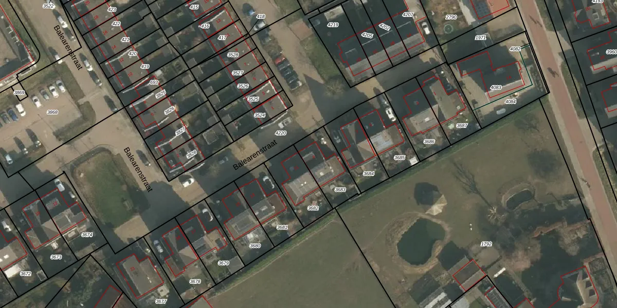 Balearenstraat 9 is gelegen op kadastraal perceel LEN00A3683. Deze kadastrale aanduiding is uniek en wordt gebruikt door het Kadaster om eigendomsrechten en andere zakelijke rechten vast te leggen. Het perceel maakt onderdeel uit van de kadastrale gemeente Lent.