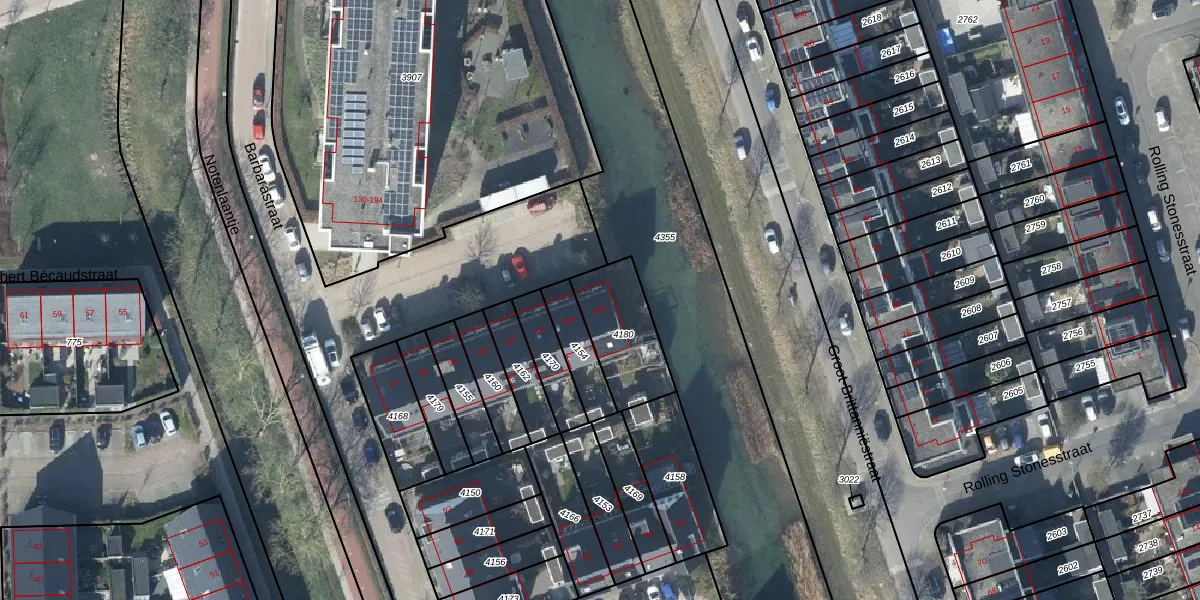 Het perceel waarop Barbarastraat 108 staat heeft een oppervlakte van 255 m². Dit is een middelgroot perceel. De perceeloppervlakte wordt geregistreerd door het Kadaster. Gedetailleerde informatie over de maten van dit perceel kunt u vinden in het rapport Kadastrale kaart met maatvoering van Barbarastraat 108.