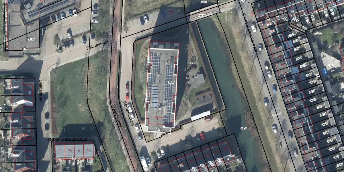 Het perceel waarop Barbarastraat 158 staat heeft een oppervlakte van 2634 m². Dit is een zeer groot perceel. De perceeloppervlakte wordt geregistreerd door het Kadaster. Gedetailleerde informatie over de maten van dit perceel kunt u vinden in het rapport Kadastrale kaart met maatvoering van Barbarastraat 158.