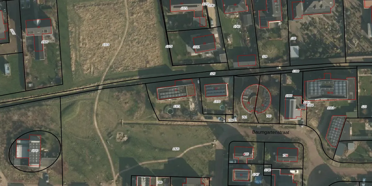 Het perceel waarop Baumgartenstraat 25 staat heeft een oppervlakte van 650 m². Dit is een groot perceel. De perceeloppervlakte wordt geregistreerd door het Kadaster. Gedetailleerde informatie over de maten van dit perceel kunt u vinden in het rapport Kadastrale kaart met maatvoering van Baumgartenstraat 25.