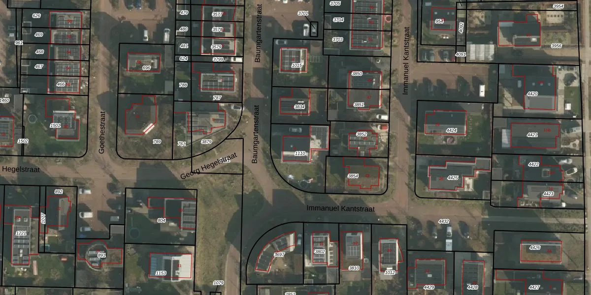 Het perceel waarop Baumgartenstraat 4 staat heeft een oppervlakte van 397 m². Dit is een groot perceel. De perceeloppervlakte wordt geregistreerd door het Kadaster. Gedetailleerde informatie over de maten van dit perceel kunt u vinden in het rapport Kadastrale kaart met maatvoering van Baumgartenstraat 4.