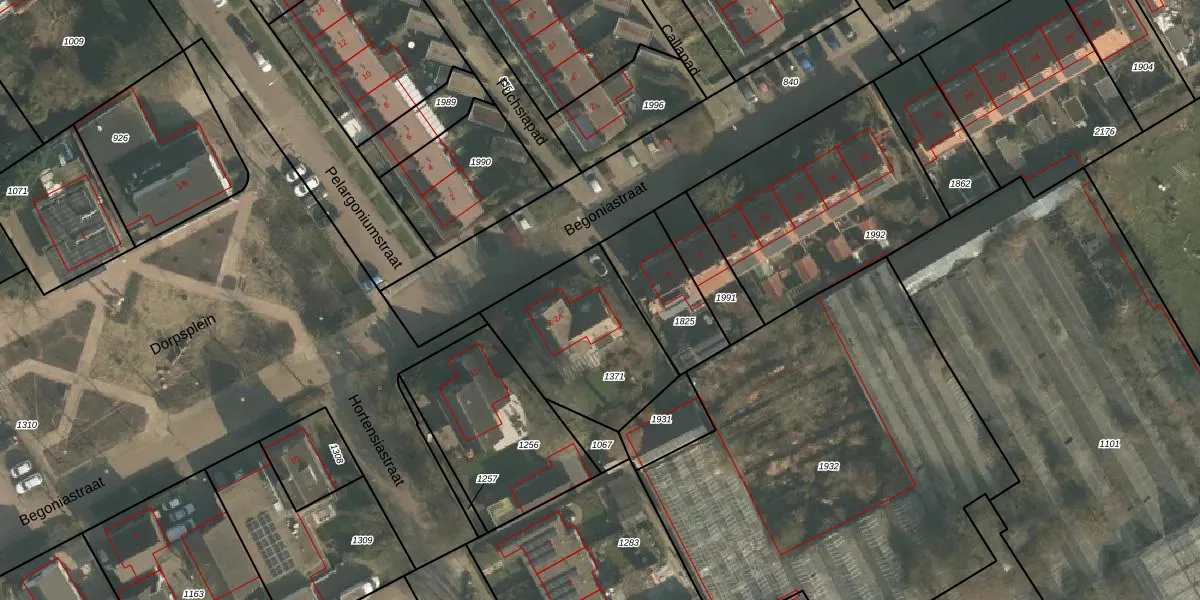 Het perceel waarop Begoniastraat 2-A staat heeft een oppervlakte van 560 m². Dit is een groot perceel. De perceeloppervlakte wordt geregistreerd door het Kadaster. Gedetailleerde informatie over de maten van dit perceel kunt u vinden in het rapport Kadastrale kaart met maatvoering van Begoniastraat 2-A.