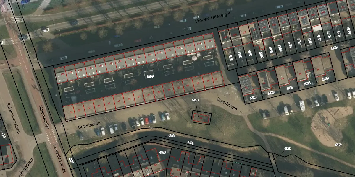 Boterbloem 32 is gelegen op kadastraal perceel LEN00A2870. Deze kadastrale aanduiding is uniek en wordt gebruikt door het Kadaster om eigendomsrechten en andere zakelijke rechten vast te leggen. Het perceel maakt onderdeel uit van de kadastrale gemeente Lent.