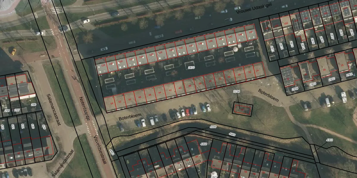 Boterbloem 40 is gelegen op kadastraal perceel LEN00A2870. Deze kadastrale aanduiding is uniek en wordt gebruikt door het Kadaster om eigendomsrechten en andere zakelijke rechten vast te leggen. Het perceel maakt onderdeel uit van de kadastrale gemeente Lent.