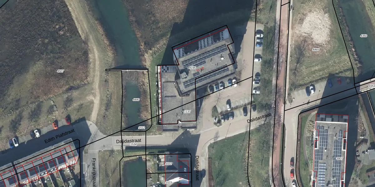Dalidastraat 109 is gelegen op kadastraal perceel LEN00A4195. Deze kadastrale aanduiding is uniek en wordt gebruikt door het Kadaster om eigendomsrechten en andere zakelijke rechten vast te leggen. Het perceel maakt onderdeel uit van de kadastrale gemeente Lent.