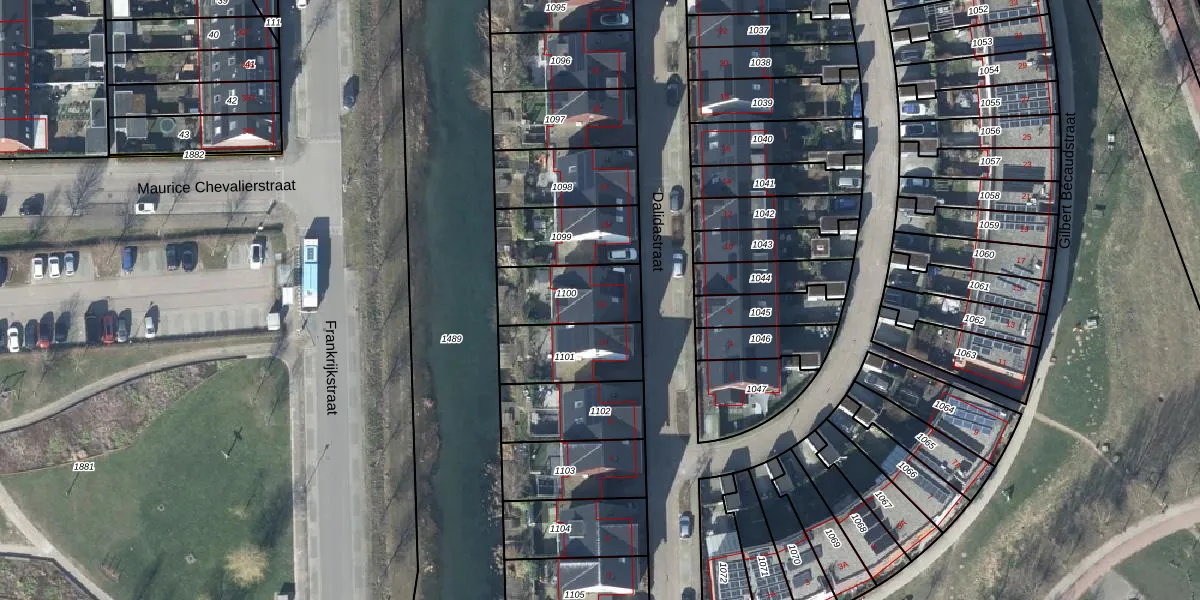 Het perceel waarop Dalidastraat 13 staat heeft een oppervlakte van 234 m². Dit is een middelgroot perceel. De perceeloppervlakte wordt geregistreerd door het Kadaster. Gedetailleerde informatie over de maten van dit perceel kunt u vinden in het rapport Kadastrale kaart met maatvoering van Dalidastraat 13.