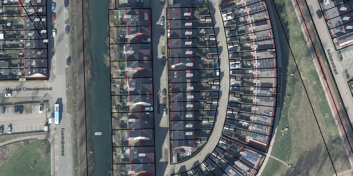 Dalidastraat 14 is gelegen op kadastraal perceel NMG00H1041. Deze kadastrale aanduiding is uniek en wordt gebruikt door het Kadaster om eigendomsrechten en andere zakelijke rechten vast te leggen. Het perceel maakt onderdeel uit van de kadastrale gemeente Nijmegen.