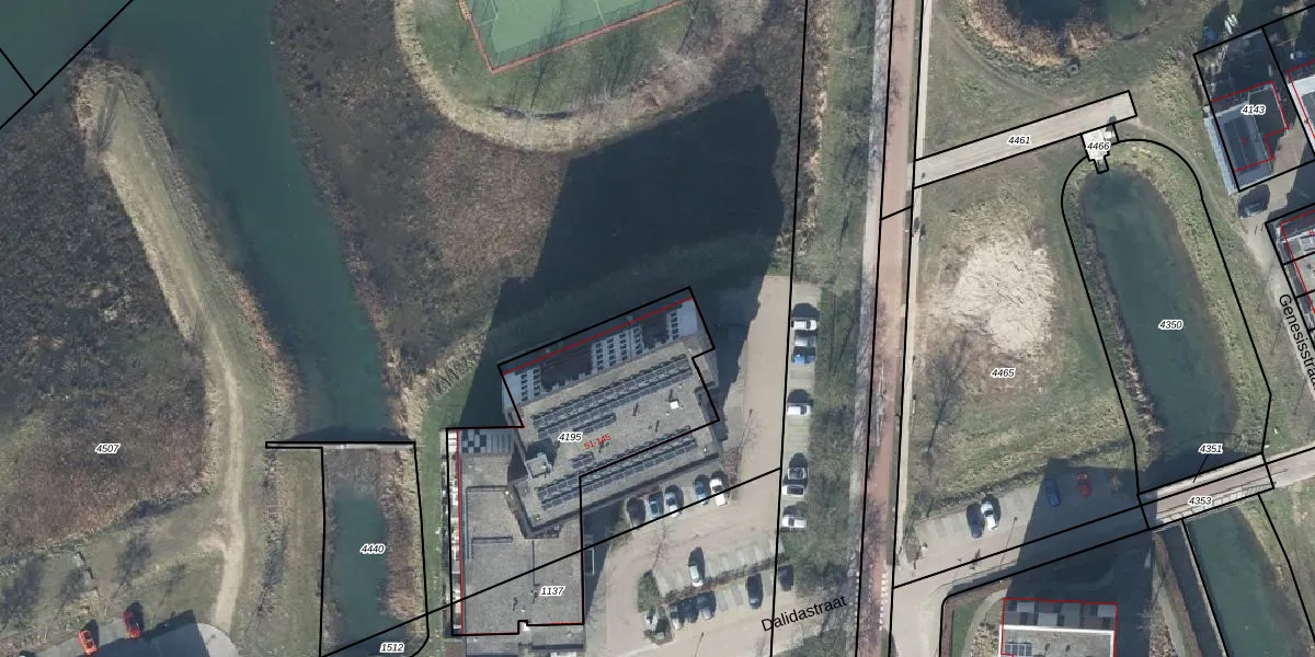 Dalidastraat 61 is gelegen op kadastraal perceel LEN00A4195. Deze kadastrale aanduiding is uniek en wordt gebruikt door het Kadaster om eigendomsrechten en andere zakelijke rechten vast te leggen. Het perceel maakt onderdeel uit van de kadastrale gemeente Lent.