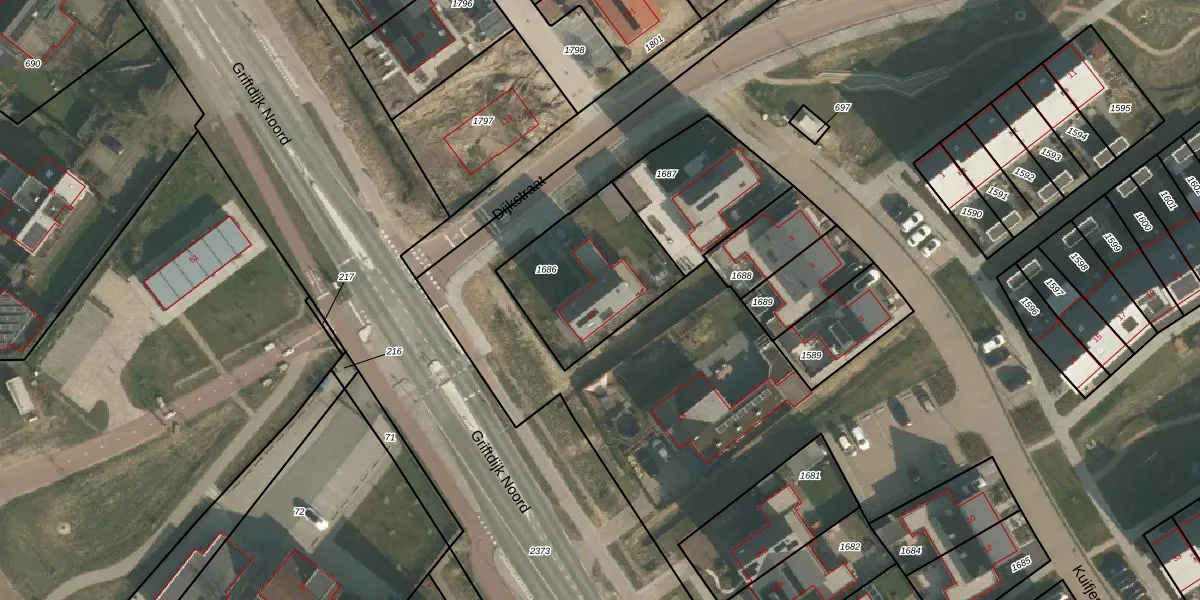 Het perceel waarop Dijkstraat 12 staat heeft een oppervlakte van 504 m². Dit is een groot perceel. De perceeloppervlakte wordt geregistreerd door het Kadaster. Gedetailleerde informatie over de maten van dit perceel kunt u vinden in het rapport Kadastrale kaart met maatvoering van Dijkstraat 12.