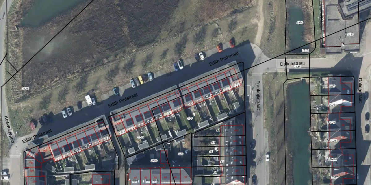 Edith Piafstraat 314 is gelegen op kadastraal perceel LEN00A3745. Deze kadastrale aanduiding is uniek en wordt gebruikt door het Kadaster om eigendomsrechten en andere zakelijke rechten vast te leggen. Het perceel maakt onderdeel uit van de kadastrale gemeente Lent.