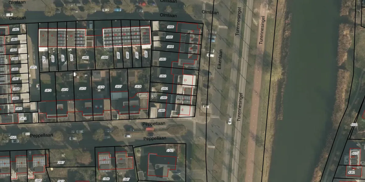 Gebruik de zoekbalk of klik op een perceel voor informatie over de adressen binnen dit perceel.
