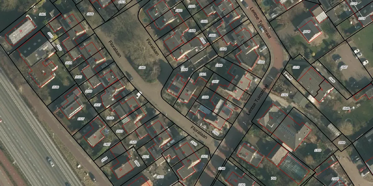 Floralaan 13 is gelegen op kadastraal perceel LEN00C1501. Deze kadastrale aanduiding is uniek en wordt gebruikt door het Kadaster om eigendomsrechten en andere zakelijke rechten vast te leggen. Het perceel maakt onderdeel uit van de kadastrale gemeente Lent.