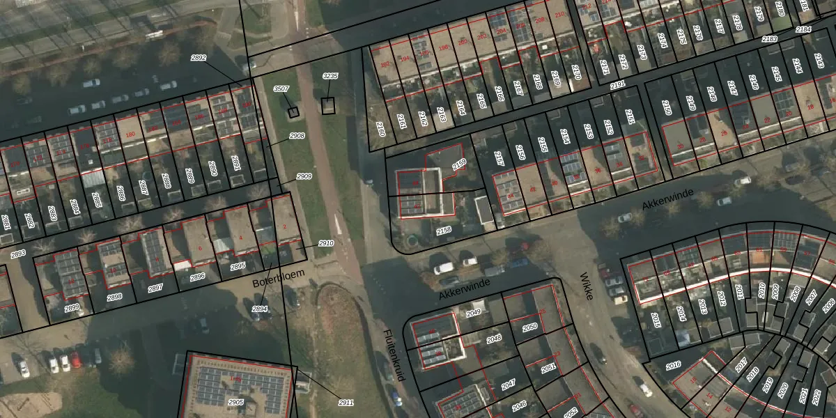 Gebruik de zoekbalk of klik op een perceel voor informatie over de adressen binnen dit perceel.