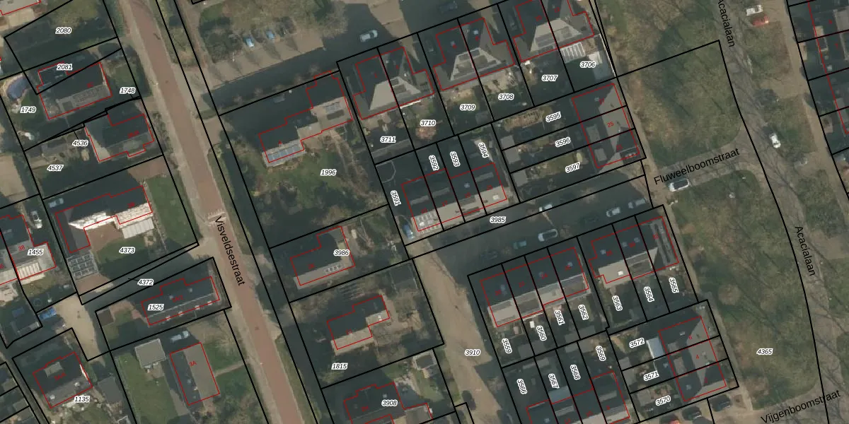 Fluweelboomstraat 15 is gelegen op kadastraal perceel LEN00A3591. Deze kadastrale aanduiding is uniek en wordt gebruikt door het Kadaster om eigendomsrechten en andere zakelijke rechten vast te leggen. Het perceel maakt onderdeel uit van de kadastrale gemeente Lent.