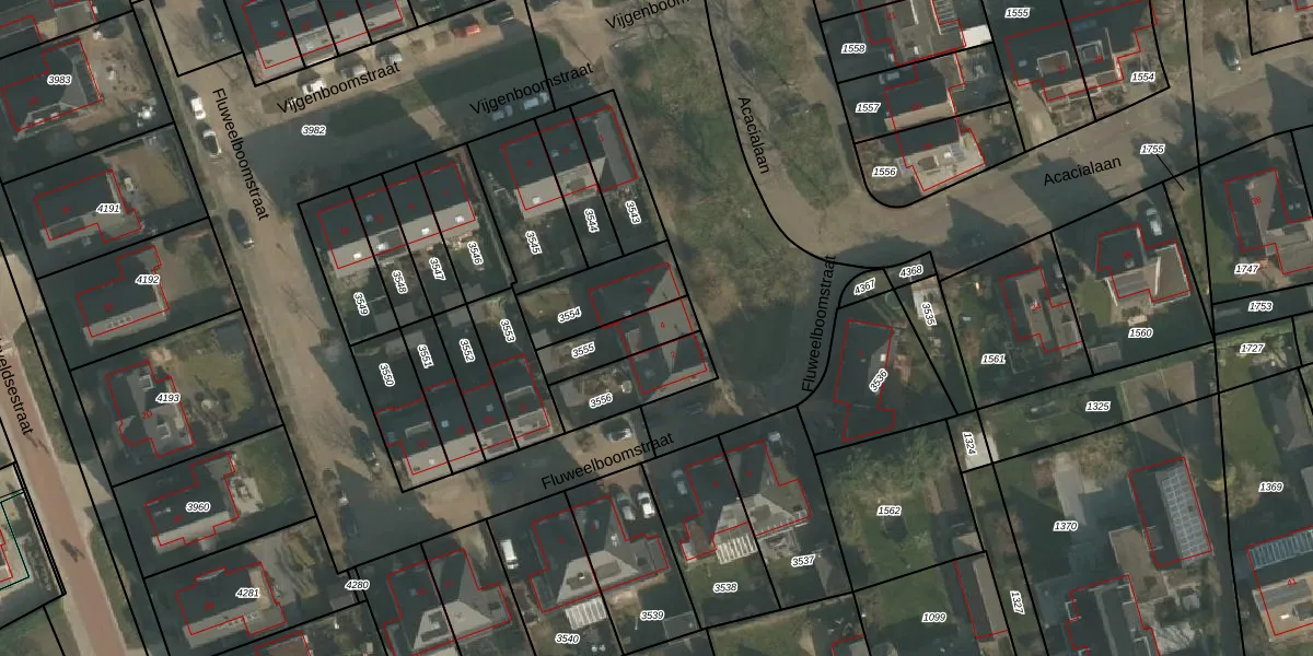 Fluweelboomstraat 4 is gelegen op kadastraal perceel LEN00A3555. Deze kadastrale aanduiding is uniek en wordt gebruikt door het Kadaster om eigendomsrechten en andere zakelijke rechten vast te leggen. Het perceel maakt onderdeel uit van de kadastrale gemeente Lent.